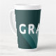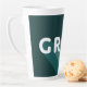 Feiern Sie Ihren Abschluss mit dieser coolen, grün-weißen Tasse, die das Wort "GRAD" in einem großen, kühlen Schriftart enthält. In Grün- und Weißtönen. Platz für Namen und/oder Schulname und Informationsklasse. Macht ein wunderbares Geschenk.