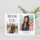 Moderne und verspielte Abschlussankündigung mit Foto-Karte mit 2 Fotos auf der Vorderseite und 1 auf der Rückseite. Der Text sagt "DANKE" mit funkelnden Sternen. Fügen Sie den Namen des Absolventen, Informationen und eine Nachricht hinzu, um diese Karte zu personalisieren.