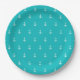 Paper Teller mit einem weißen Ankermuster mit einer bearbeitbaren Hintergrundfarbe (klicken Sie auf die Hintergrundfarbe anpassen und ändern). Sie machen großartige Teller für einen Strand oder ein Wasserfest. Klicken Sie zum Hinzufügen von Text auf Anpassen. *Bitte beachten Sie, dass das Zazzle-Wasserzeichen, das in der Zoomvorschau angezeigt wird, NICHT auf dem gedruckten Endprodukt erscheint. © Rosewood and Citrus