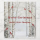 Hübsche personalisierte Weinetiketten mit wunderschönem Wald aus Weißem Birkenbaum, schneebedeckte Kiefern mit hübschen roten Kardinälen, die in den Ästen sitzen.