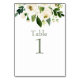 Tischnummer mit schwarzem Text Aquarell Weiße Blüten & Foliage.