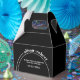 Diese elegante schwarze Gefälligkeitsbox wurde mit einem schwarzen Äußeren in elegantem Schwarz gestaltet, ergänzt durch einen auffallenden weißen Bogen und eine fette Typografie. Die anmutige Kurve auf der Schachtel steigt elegant an und erstreckt sich nach rechts, nahtlos mit den Namen der Jungvermählten. Neben dieser persönlichen Touch enthält die Box auch eine herzliche Botschaft von "Danke", die dem Gesamtdesign eine besondere Touch verleiht.