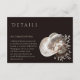 Genießen Sie Ihre Hochzeitsarbeit mit den eleganten zweiseitigen Detailkarten, die Ihr modernes Western-Thema ergänzen. Mit einem weißen, luxuriösen Hut mit weißen Blume verbinden sie rustikalen Western-Charme mit moderner Eleganz. Auf der einen Seite finden Sie wichtige Informationen zum Empfang, damit Sie wissen, wo Sie Ihren besonderen Tag feiern können, auf der anderen Seite finden Sie Informationen zu den Unterkünften für ein nahtloses und stressfreies Erlebnis. Diese auf hochwertigen texturierten Cardstock gedruckten Karten behielt Ihre Gäste stilvoll auf dem Laufenden.