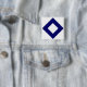 Ein minimalistisches geometrisches Muster mit einer fett blauen Diamant-Kontur in der Mitte, die die Kanten eines weißen Hintergrunds .