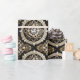 Dieses Design zeigt ein Mandala-Muster in Gold, mit weißem Diamanten-Set auf schwarzem Hintergrund.