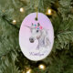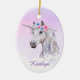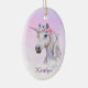 Ein wunderschönes weißes Einhorn ist mit rosa und blauen Blumen geschmückt und erhebt sich aus flauschigen weißen Wolken auf diesem hübschen Ornament für sie. Das Einhornbild wird auf einem rosafarbenen Lavendelhintergrund mit verstreuten entfernten Sternen platziert. Im unteren Teil ist ihr Name in dunklerer Lavendel. Die Rückseite des Ornaments hat das gleiche Bild und den gleichen Hintergrund, mit einem zweiten Textfeld für Sie anpassen oder verlassen, wie es ist. Schön zu Weihnachten, aber auch geeignet für ihren Geburtstag oder jeden anderen besondere Anlass.