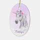 Weißer Einhorn-Blumenglaube Keramik Ornament