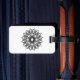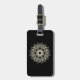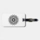 Ein Mandala mit geometrischen Spitzen-Motiven, rund um die Form von Deckelspitzen. Weiße Farbe für dunklen Grund.