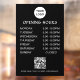 Entwickelt in einem einfachen, modernen Schriftsstil mit QR-Code, ist es perfekt für Cafés, Boutiquen, Salons, Studios oder Büros, die eine saubere und minimalistische Ästhetik schätzen. Passen Sie Ihren Geschäftsnahmen, Ihr Logo und Ihre Öffnungszeiten leicht an, um Ihre Marke zu unterstreichen. Ideal für Glastüren oder -fenster, gibt Ihrem Geschäft ein gepflegtes und einladendes Erscheinungsbild.