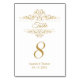 Weißer, goldfarbener Hochzeitstisch Tischnummer