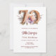 Eine moderne, stilvolle und glamouröse Einladung zum 70. Geburtstag. Weißer Hintergrund mit pfirsichfarbener und lila Blume in Aquarell. Der Name ist mit einem modernen handgeschriebenen Stilskript geschrieben. Personalisieren Sie Ihre Party-Daten und fügen Sie sie hinzu. Nummer 70 wird mit einem Schriftart im Ballonstil geschrieben, Skript.