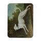 Dieses Design zeigt ein Gemälde des französischen Künstlers Jean-Baptiste Oudry (1686-1755). Es zeigt einen lila, weißen Windhund, der durch eine ländliche Landschaft sprang. Der Körper des Hundes ist schlank, aber muskulös und stark. Der Windhund trägt einen blauen Kragen um den Hals. Sein Schwanz ist beim Laufen und Sprüngen in der Luft aufgerollt. Der Kopf des Hundes ist umgedreht und sieht nach hinten, als würde er gejagt. Im Hintergrund stehen viele Bäume mit grünen Blätter.