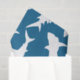 Moderne Silhouetten des weißen Haifischs und OzeanblauSeidenpapier.