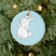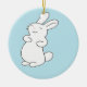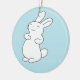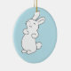 Lächelndes weißes Hasen auf blauem Hintergrund.