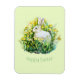 Kleiner weißer Hase. Süße kleine Babykaninchen, die Blume genießen und sonnigen Tag auf der Wiese, malte ich das Original mit Wasserfarben. Frohe Ostern!