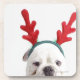 weißer Hintergrund, weiße männliche Bulldogge, rot Untersetzer