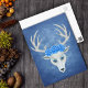 Diese Postkarte hat einen weißen Hirschkopf mit Geweih und hellblaue Augen mit drei großen blauen Rose auf dem Kopf auf einem Hintergrund von scheußlichen Blautönen.