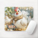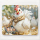 Weißer Hund mit Eiern in einem Karton Mousepad