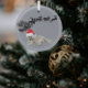 Ein personalisierter Weihnachtsschmuck ist ein guter Weg, um Ihr Haustier zu Weihnachten zu feiern. Ein zeichn einer rot-weißen Weihnachtsmannmütze wird auf einem Foto eines kleinen, flauschigen weißen Hundes platziert. Eine Silhouette von Schlitten und Rentieren des Weihnachtsmannes, die durch den Himmel fliegen, befindet sich im grauen Hintergrund. Wenn du will, das Hund-Foto durch ein ausgeschnittenes Foto deines Haustieres zu ersetzen, kannst du dies tun. Durch Klicken auf Design bearbeiten können Sie die Weihnachtsmannmütze an den Kopf Ihres Tieres anpassen. Wenn Sie Hilfe beim Personalisieren benötigen, schreiben Sie mir bitte.