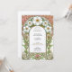 Diese atemberaubende Jugendstil-Hochzeitsreise zeigt eine harmonische Mischung aus weißen Kosmos-Blume, rosa Kirschblüten und üppigem Grün. Die reizvolle Blumengrenze zeigt anmutige Kurven und verzierte Details, die die zeitlose Schönheit der Jugendstil-Bewegung widerspiegeln. Weiche Pastelltöne in Rosa, Weiß und Grün dominieren die Palette und erinnern an eine romantische und elegante Ästhetik. Diese Einladung mit individuell gestaltbarem Text, gerahmt von exquisiten botanischen Entwürfen, ist ideal für naturlich inspirierte, Vintage Hochzeiten oder Gartenhochzeiten und verlasst so Ihren Gästen einen bleibenden Eindruck.