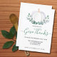Mit diesem stilvollen Erntedank laden Familie und Freunde zu einem besonderen Fest ein. Es ist mit einem weißen Kürbis in Aquarellfarbe und einem Eukalyptusblättern in sanften Grüntönen dekoriert. Passen Sie es mit Ihrem Namen und Ihren Details an. Weil wir unsere eigenen Kunstwerke erstellen, werden Sie dieses exakte Bild von anderen Designern nicht finden. Original Wasserfarbe © Michele Davies.