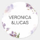 Weiße Lila florale Hochzeitstickerei klassisch runder Sticker. Unsere Kollektion "White Lila Floral Wedding" besticht durch moderne Pinselstriche in Weiß, lila und wenig hellrot mit weißen Akzenten kombiniert mit einem modernen Layout und einem eleganten Schriftart. Alle Informationen sind einfach anpassbar. Kontaktieren Sie uns über den Shop für individuelle Anfragen. Karo in unserem Shop für weitere Artikel aus dieser Kollektion.