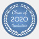 Weißer Lorbeerkranz auf blauem Hintergrund Abschluss Sticker. Personalisieren Sie diese, indem Sie Ihren benutzerdefinierten Text hinzufügen.