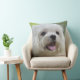 Weißer maltesischer Hund, der heraus Zunge haftet