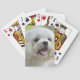 Weißer maltesischer Hund, der heraus Zunge haftet
