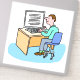 Abbildung von Büroangestellten Zeichn eines Büroangestellten an seinem Schreibtisch. Aufkleber mit einem weißen Mann, der in einem Büro an seinem Computer arbeitet. Weiße Büroangestellte.