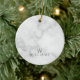 Fügen Sie Ihrem Weihnachtsbaum eine Touch von einzigartigem Stil mit dieser eleganten, weißen Marmormuster-Keramik Zierpflanzen mit Monogramm und Name in grau-modernen Sans Serif Schriftart Stil auf weißem Marmorboden.