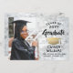 Verkünden Sie eine High School oder Uni-Abschluß und laden Sie Familie und Freunde zu feiern mit maßgeschneiderten Foto Imitats Marmor Party Einladungen. Das Bild und die Formulierung sind einfach zu personalisieren und die Farben lassen sich mit dem Zazzle Design Tool leicht ändern. Diese Vorlage ist als kombinierte Anzeigenkarte und Party Einladung, die mit allen Details Ihrer Wahl, wie Eltern Namen, besondere Ehren, Abschluss Titel, Lieblings-inspirierendes Zitat, Graduiertenplan oder neue Adresse, angepasst werden können. Das goldfarbene, schwarz-weiße Design besticht durch einen Marmorhintergrund aus Imitaten, eine Massivdecke aus Imitate, eine elegante moderne Kalligraphie, Vintage Typografie und ein beliebtes Foto, wie z.B. ein Seniorenbild oder ein Foto aus der Anfängerfeier. Bitte beachten Sie, dass Gold farblich gedruckt ist, nicht metallische Folie. Diese Abschluss-Karte ist eine stilvolle Möglichkeit, ein besonderes Fest anzukündigen. Herzlichen Glückwunsch an den Absolventen!