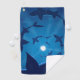 Dieses Golf-Handtuch zeigt, wie Haie sich um den weißen Mond kreisen und durch das Wasser schimmern. Die Mondstrahlen durchdringen die Meerestiefe. Das Design ist in Blau gehalten. Für Unterwasserwelt-Liebhaber.