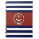 Weißer Nautikanker/Navy Knoten/rot/weiß Streifen Notizblock