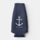 Moderne Minimalistische Nautical Bottle Cooler mit weißem Anker mit personalisiertem Namen in weißem, modernen Sans serif Schriftart Stil auf marineblau Hintergrund. Perfekt als Geschenk für Vater, Trauzeugen und mehr.