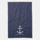Modernes Minimalistisches Nautical Kitchen Handtuch mit weißem Anker mit personalisiertem Namen in weißem, modernen Sans serif Schriftart Stil auf marineblau Hintergrund. Perfekt als Strandhaus Dekoration, Hauswärme Geschenk und mehr.