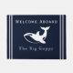 Weißer Nautikwal an einer weichen blauen Küste der Fußmatte