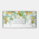 Fügen Sie Ihrem Arbeitsbereich einen Blumenakzent mit dieser Aquarellmatte hinzu. Es ist mit weißen Orchideen, Kumquats und Grünpflanzen in Aquarellfarbe ausgestattet. Personalisieren Sie diese, indem Sie Ihre Daten hinzufügen. Diese Orchideenmatte ist perfekt als Geschenk.