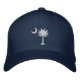 Das South Carolina Palmetto Mondlogo in Weiß bestickt auf einem Hut. Wählen Sie Ihren Lieblings-Hut Stil und Farbe, aber wir mögen es auf einem dunkelblauen Hut.