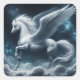 Weißer Pegasus gegen den dunklen blauen Himmel Quadratischer Aufkleber