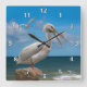 Weißer Pelikan auf dem Felsen Quadratische Wanduhr