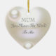 Dieses hübsche, herzförmige Keramik-Sake-Ornament ist so elegant. Es ist mit einem weißen Perleneffekt-Design und dem bearbeitbaren Text "Mum you gemein the world to me" Perfect for Mütter Day ausgestattet.