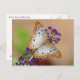 Weißer Pfauenschmetterling auf violetten Blumen Postkarte