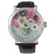 WEISSER PINK FUCHSIA ROSE, ANEMON-BLUME MONOGRAMM ARMBANDUHR