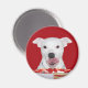 Weiße Pitbulle Terrier sieht sich einen Erdbeerkuchen an und leckt ihr Maultier in Erwartung niedlicher Hundeliebhaber Kühlschrankmagnet