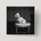 Weißer Pudel, der auf Schemel B&W sitzt Button