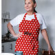 "Fügen Sie Ihrer Küche oder Ihrem Arbeitsbereich eine stilvolle Touch mit dieser klassischen Schürze hinzu, die einen lebhaften, roten Hintergrund mit einem hübschen weißen Polka-Punktmuster aufweist. Personalisieren Sie es mit Ihrem Namen oder einer speziellen Nachricht für ein einzigartiges und funktionelles Zubehör. Ideal zum Kochen, Kreieren oder Gießen!"