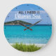 Weißer Sandstrand mit türkisblauem Wasser und das Große Wanduhr
