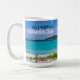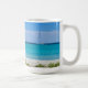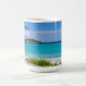 Weißer Sandstrand mit türkisblauem Wasser und das Kaffeetasse