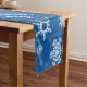 Der blaue Tischläufer mit weißen Schneeflocken, verstreut über einen blauen Hintergrund, mit dem Text "Frohe Weihnachten" und "Happy New Year". Fügt eine schöne Touch zu Ihrem Urlaubstisch hinzu - auch ein tolles Geschenk. Passen Sie den Text nach Belieben an. Stellen Sie sicher, dass Sie den passenden Baumrock und andere Zuhause-Akzente aus dem Karo ziehen.